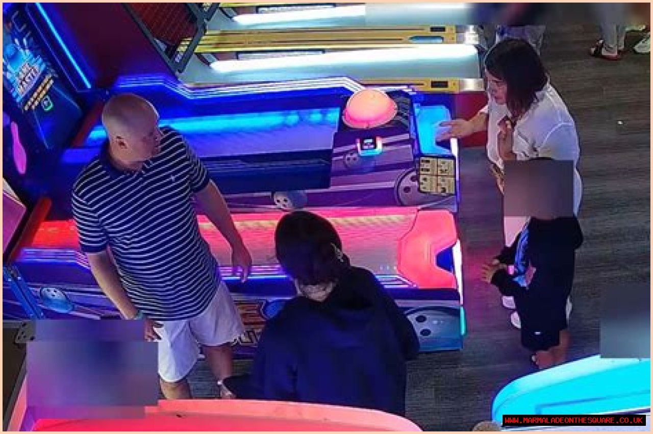 The woman is talking with a child of her own near the unidentified arcade’s Skee-ball alleys when she looks up as a child and a man walk past her, according to the video.